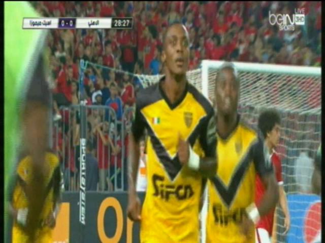 وطالب مؤمن زكريا فى الدقيقة 27 باحتساب ركلة جزاء بداعى اصطدام الكرة بيد مدافع أسيك أبيدجان داخل منطقة الجزاء قبل ان يتم ابعاد الكرة الى ضربة ركنية.