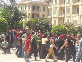 تجمهر منذ قليل العشرات من طلاب وطالبات الثانوية العامة أمام البنك الأهلى بجوار مبنى محافظة الدقهلية اعتراضا على تأجيل وإعادة عدد من المواد، وذلك عقب انتهائهم من أداء امتحان مادة التربية الدينية.