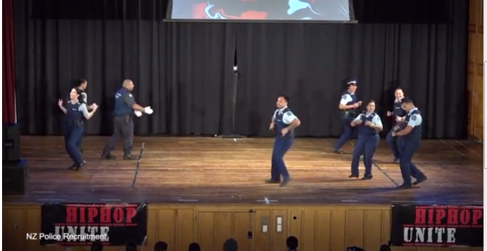 نشرت صحيفة ديلي ميل البريطانية مقطع فيديو لمجموعة من الضباط فاجأوا الجمهور برقصه "هيب هوب" خلال حفل في نيوزلندا.