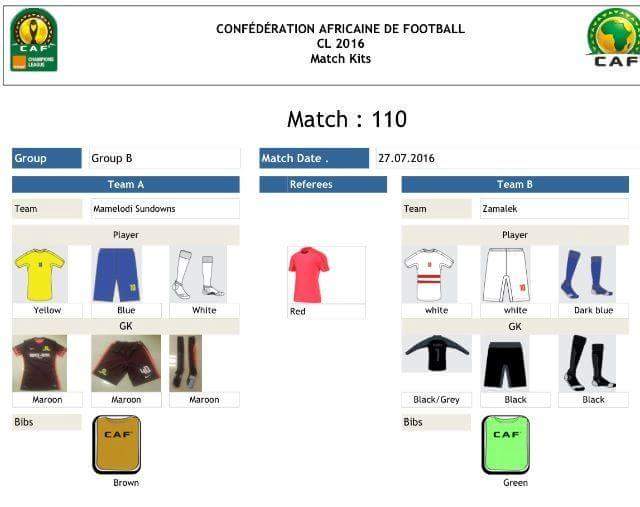 ومن المقرر أن يرتدي الزمالك الزي الابيض التقليدي فيما يرتدي الحارس الزي الاسود في الرمادي ويرتدي البدلاء الزي البني.