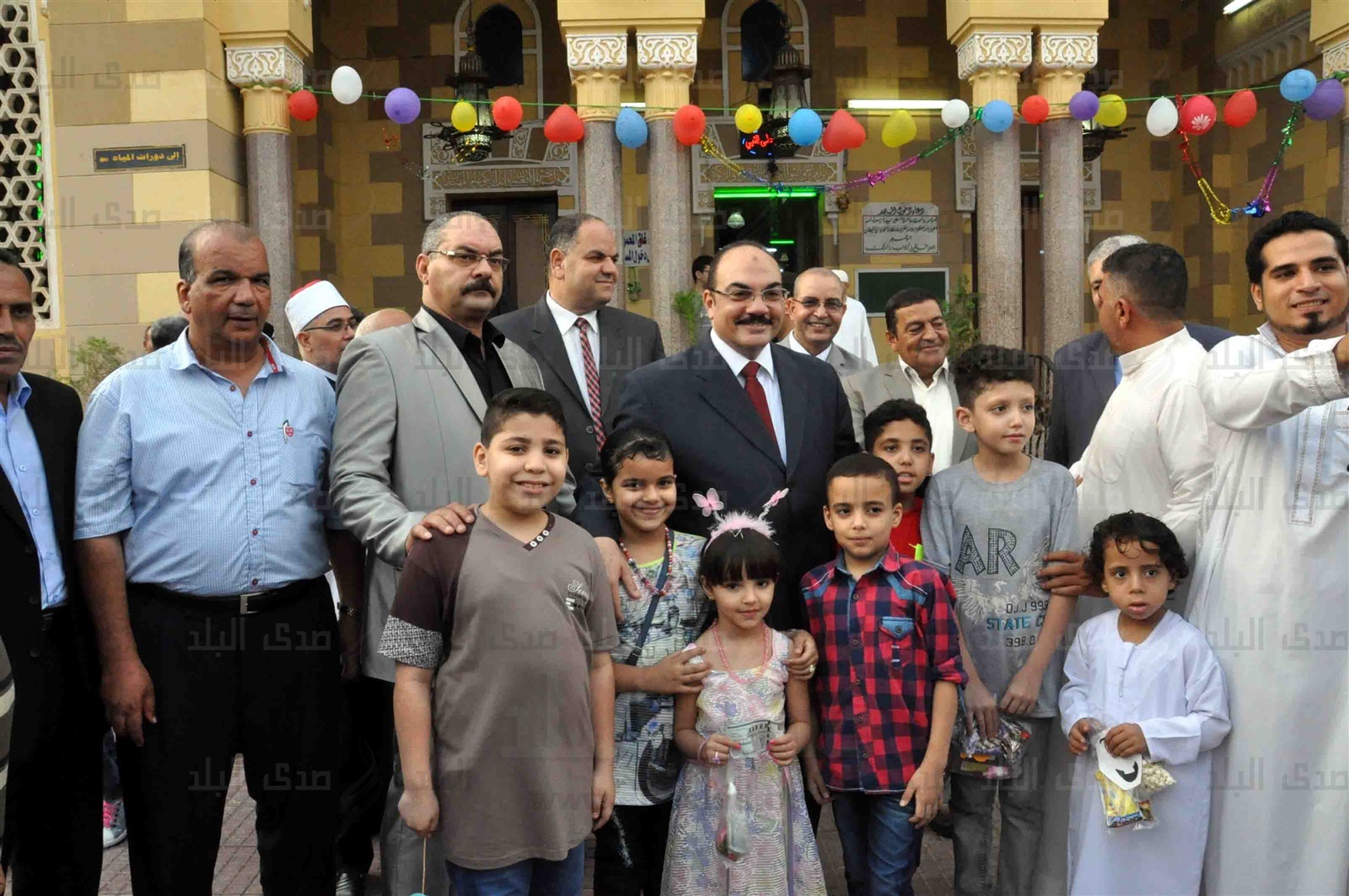 بالصور.. الأطفال ومواطنى القليوبية يلتقطون صورا مع المحافظ احتفالا بالعيد
