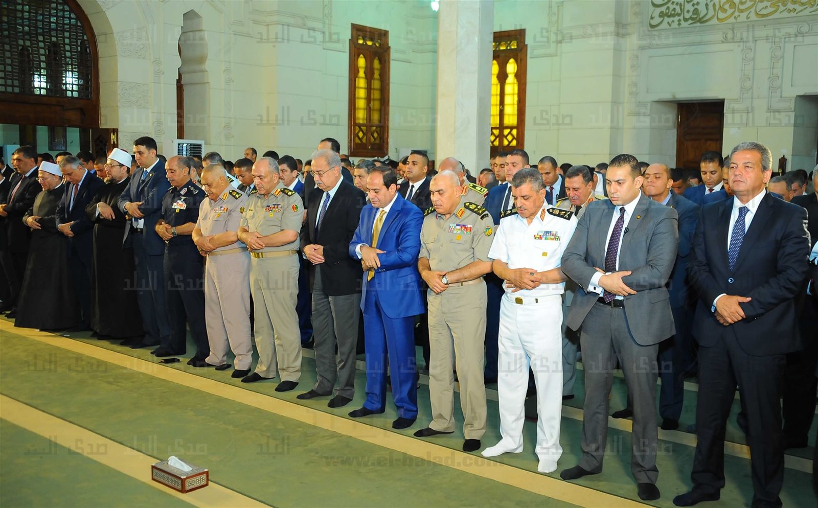 وحضر الصلاة، المهندس شريف إسماعيل رئيس مجلس الوزراء، والفريق أول صدقي صبحي القائد العام للقوات المسلحة وزير الدفاع والإنتاج الحربى والفريق محمود حجازي رئيس أركان حرب القوات المسلحة،وخالد عبد العزيز وزير الشباب و الرياضة ، وخالد حنفى وزير التموين ، ومحمد مختار جمعة وزير الاوقاف ، والمهندس محمد عبد الظاهر محافظ الإسكندرية. والدكتور شوقي علام مفتي الجمهورية، وعدد من كبار رجال الدولة، وقيادات القوات المسلحة والشرطة.