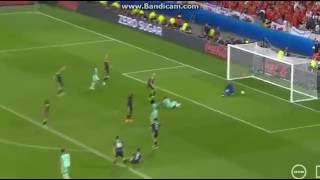 وسدد سانشيز كرة قوية تمر الى جوار الحارس الويلزى بالدقيقة 16 وسدد جاريث بيل كرة قوية تصطدم بأقدام الدفاعات البرتغالية ليتم ابعادها الى ضربة ركنية ويتسلمها نفس اللاعب ليسددها وتعلو العارضة.