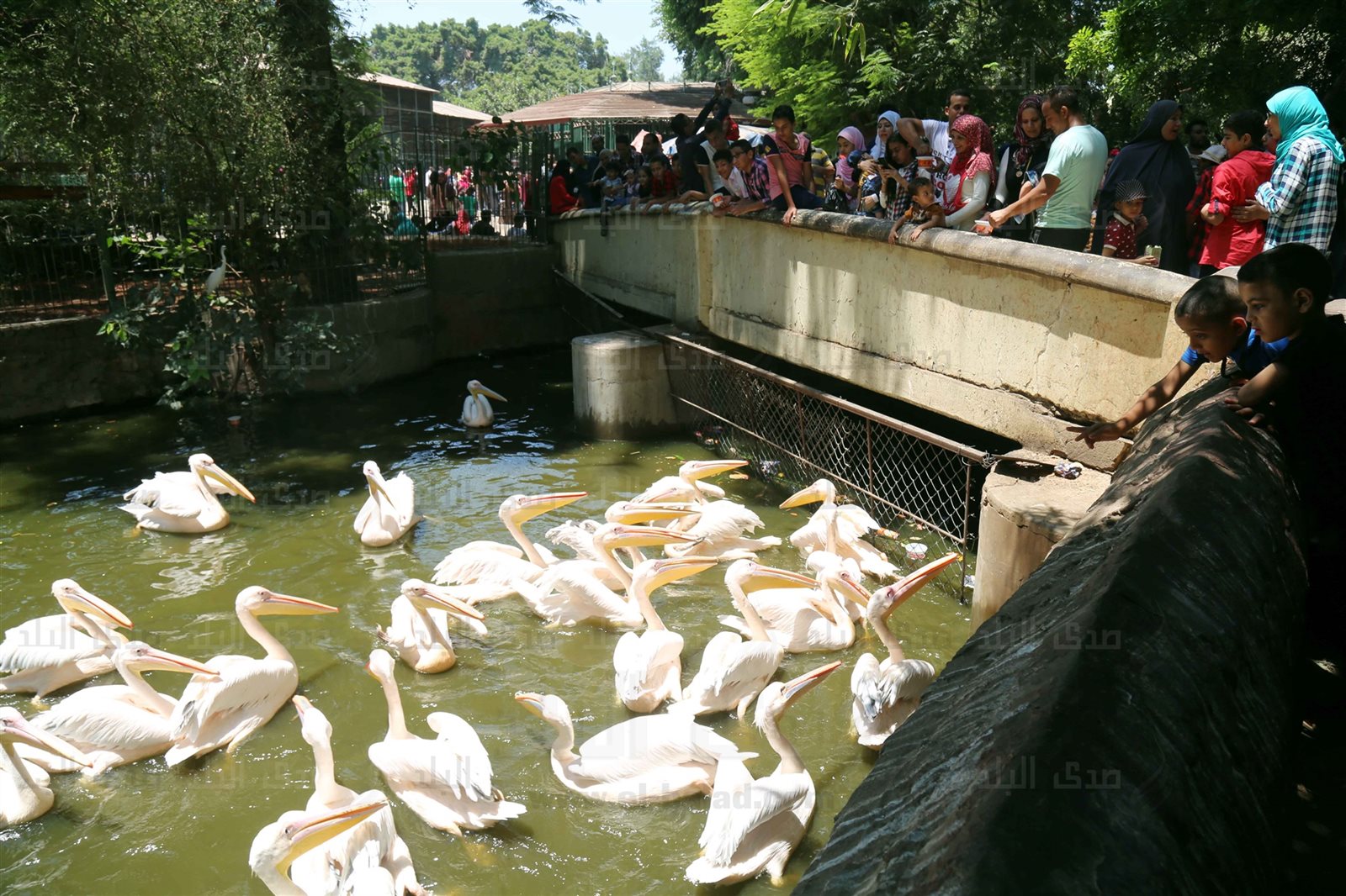 شهدت حديقة الحيوان بالجيزة اقبالا من المواطنين علي مشاهدة البط، والتقاط الصور التذكارية معها وإطعامها احتفالا بثانى ايام عيد الفطر المبارك .