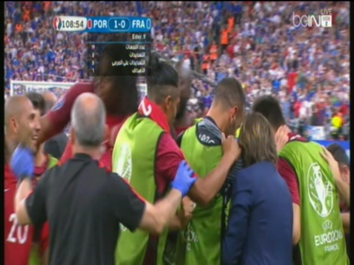 أحرز إيدر لاعب البرتغال، الهدف الأول بمرمى منتخب فرنسا فى الدقيقة 108 من قذيفة صاروخية من خارج منطقة الجزاء، فى لقاء النهائى المقام على ملعب فرنسا؛ فى إطار منافسات بطولة الأمم الأوروبية "يورو 2016" التى تستضيفها فرنسا.