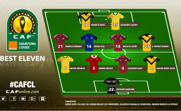 أعلن الاتحاد الأفريقي لكرة القدم عن التشكيلة المثالية للاعبي الجولة الثانية لبطولة دوري أبطال أفريقيا والتي أقيمت في الأسبوع الماضي.