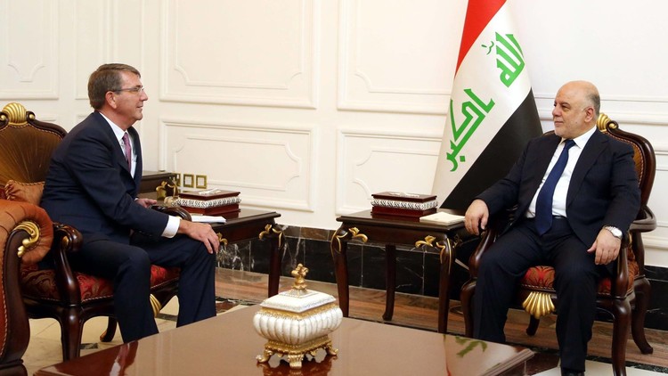 واجتمع كارتر برئيس الوزراء حيدر العبادي، ومن المقرر أن يلتقي بوزير الدفاع خالد العبيدي وقائد قوات التحالف الأمريكي شون ماكفارلاند في وقت لاحق.
