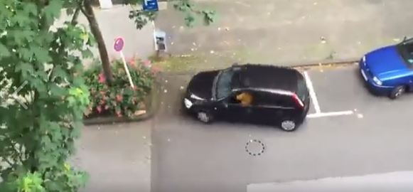 ويظهر في الفيديو سائق السيارة وهو يحاول مرات عديدة متوالية توقيف سيارته في مكان واسع غير أن كل محاولاته تبوء بالفشل ويصاب باليأس فيرحل.