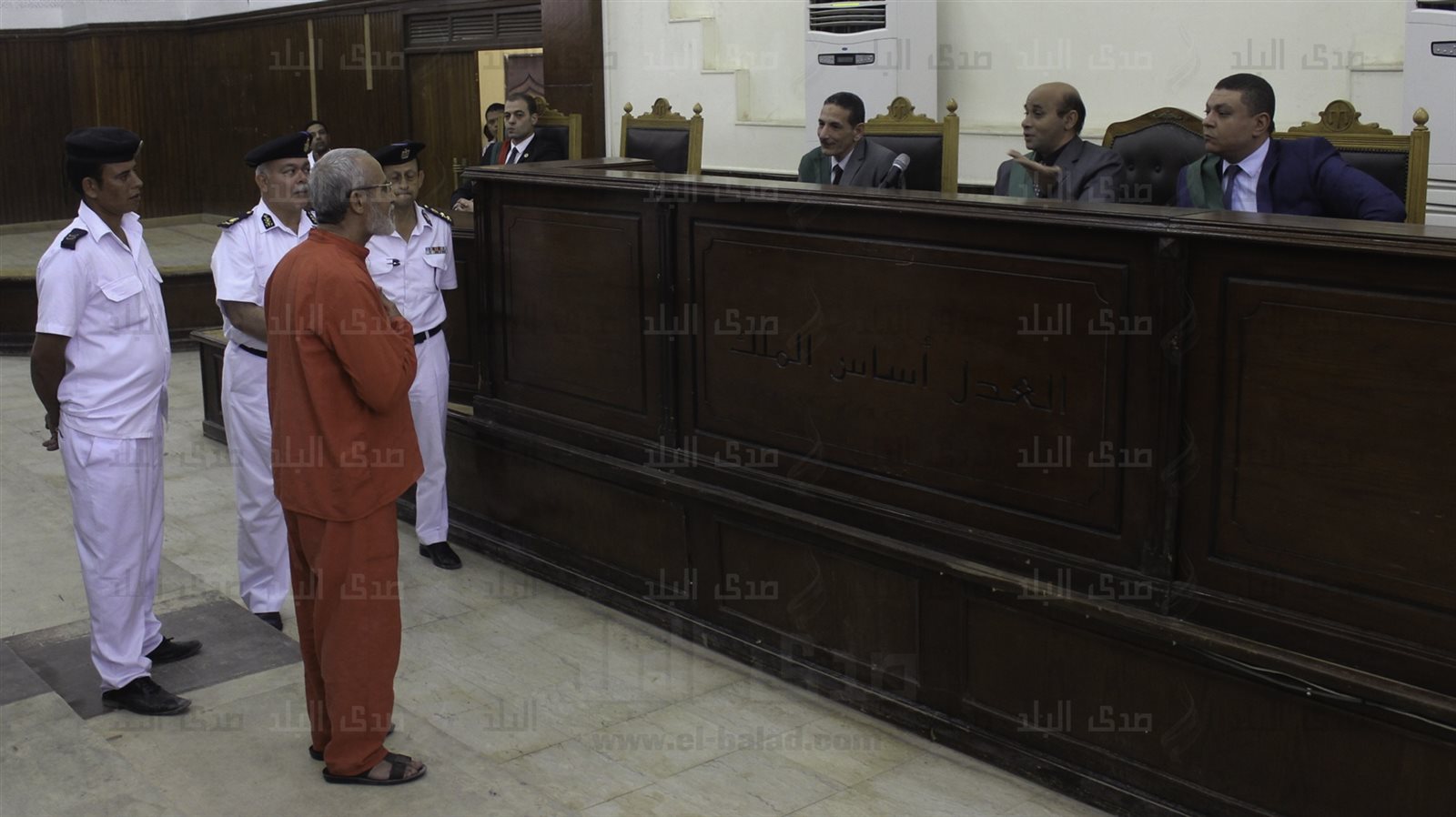بالصور .. بديع يظهر بصحة جيدة فى قفص الاتهام بعد شائعة وفاته