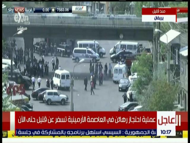 استعرضت فضائية"سي بي سي أكسترا"،عبر تغطيتها المباشرة عملية احتجاز رهائن فى العاصمة الأرمنية، اليوم الأحد، والتى اسفرت عن سقوط قتيل وعدد من الجرحي حتى الآن، بعدما اقتحم طيارون من الجيش الأرميني، مراكز شرطة في العاصمة الأرمينية يريفان وقاموا باحتجاز رهائن، ما أسفر عن مقتل شخص وإصابة آخرين بجروح.