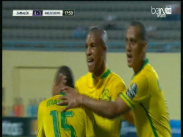 ولاحت فرصة خطيرة للفريق الجنوب افريقي بالدقيقة 16 اثر مرور الكرة داخل منطقة الجزاء من امام مدافعو الزمالك واحرز صامويل مابوندا لاعب فريق صن داونز فى الدقيقة 19 الهدف الاول في مرمى نادى الزمالك من متابعة جيدة داخل منطقة الجزاء سددها بفوة تسكن الشباك.