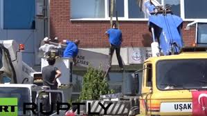 عرضت فضائية "روسيا اليوم"، اليوم الأحد، مقطع فيديو يوضح قيام القوات الأمنية التركية بإغلاق وتشميع بعض المدارس التابعة للمعارض "فتح الله كولن" زعيم حركة "الخدمة".