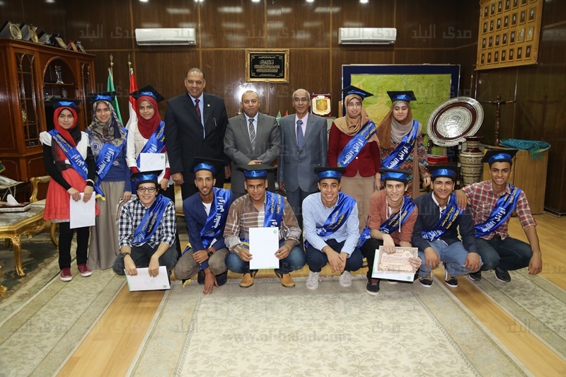 وقدم المحافظ شهادات التقدير لوكيل وزارة التربية والتعليم ومدير عام التعليم العام ومديرى المدارس التى تفوق بها الطلاب.