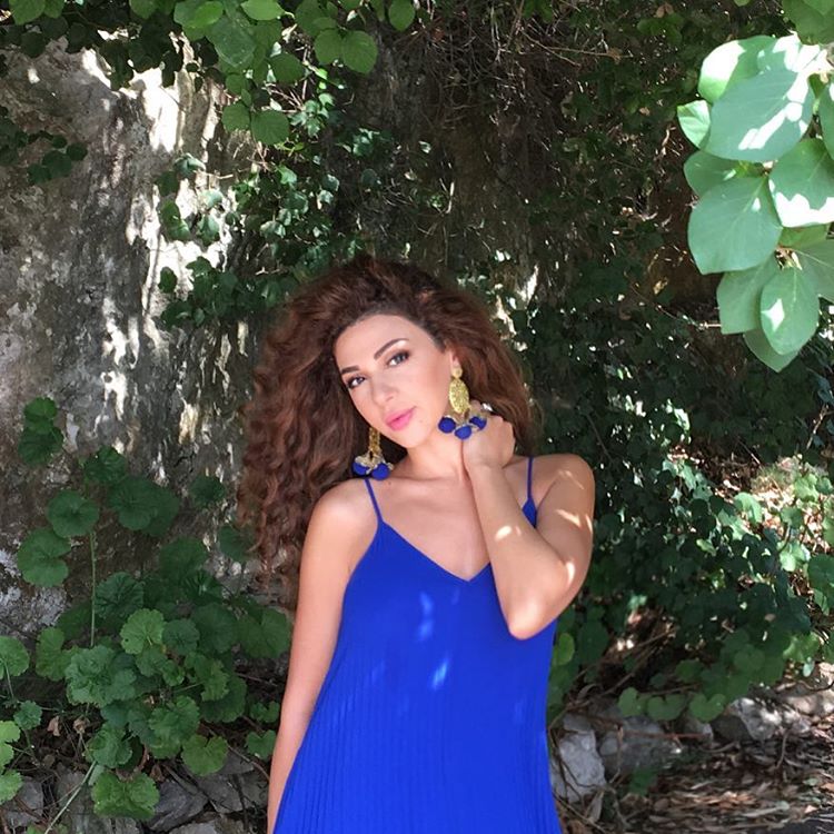 نشرت الفنانة اللبنانية ميريام فارس صورة عبر حسابها علي موقع التواصل الاجتماعي انستجرام و هي ترتدي فستانا باللون الازرق و اختارت أقراطا لأذنيها بنفس اللون .