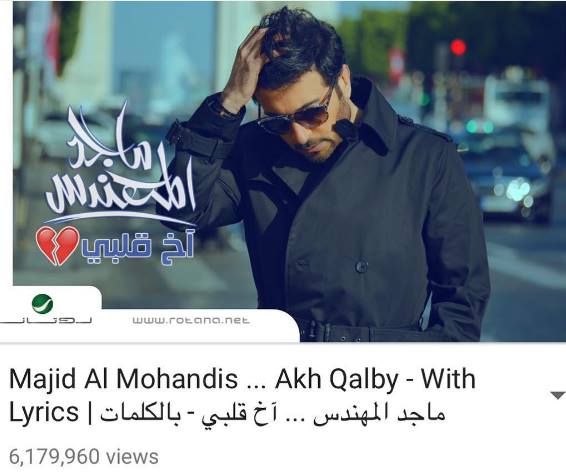 وعلق المهندس على الصورة قائلًا: "المليون السادس في سادس يوم 6/6 ماجد المهندس على قناة روتانا يوتيوب "آخ يا قلبي".