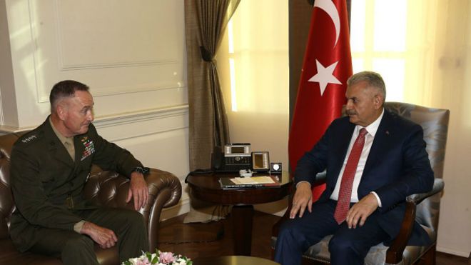 جاء ذلك أثناء اجتماع بين الجنرال جوزيف دانفورد، رئيس هيئة الأركان المشتركة في الجيش الأمريكي وبن علي يلدرم، رئيس وزراء تركيا.