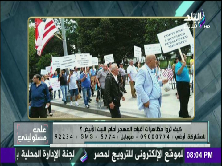 طرح الإعلامي أحمد موسى سؤالا على المشاهدين خلال تقديمه برنامج «على مسئوليتي» المذاع على قناة «صدى البلد» وهو «كيف تروا مظاهرات أقباط المهجر أمام بيت الأبيض».
