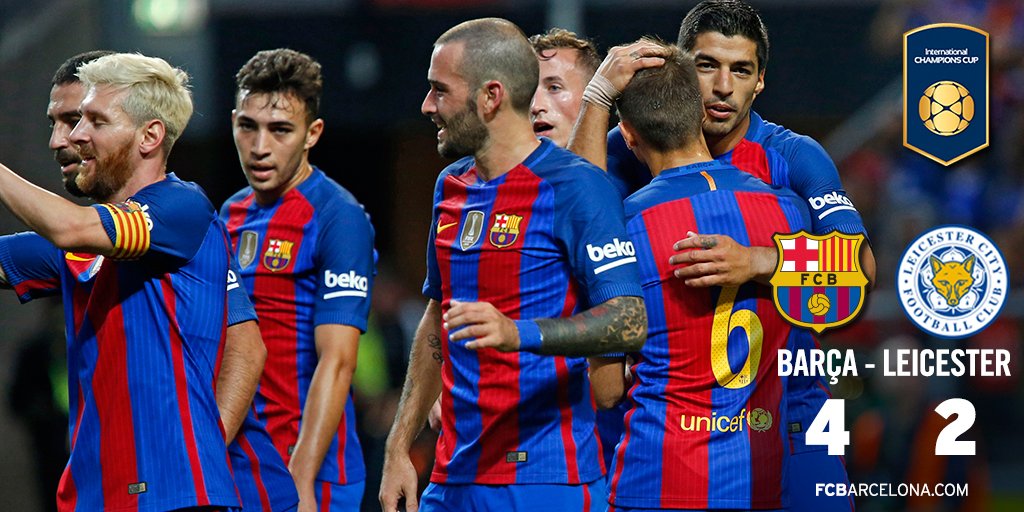 حقق فرق برشلونة الإسبانى فوزًا مستحقًا على نظيره ليستر سيتى الإنجليزى بنتيجة 4 / 2 فى المباراة التى أقيمت اليوم الأربعاء على ملعب فريندز آرينا فى بطولة الكأس الدولية للأبطال الودية لكرة القدم .
