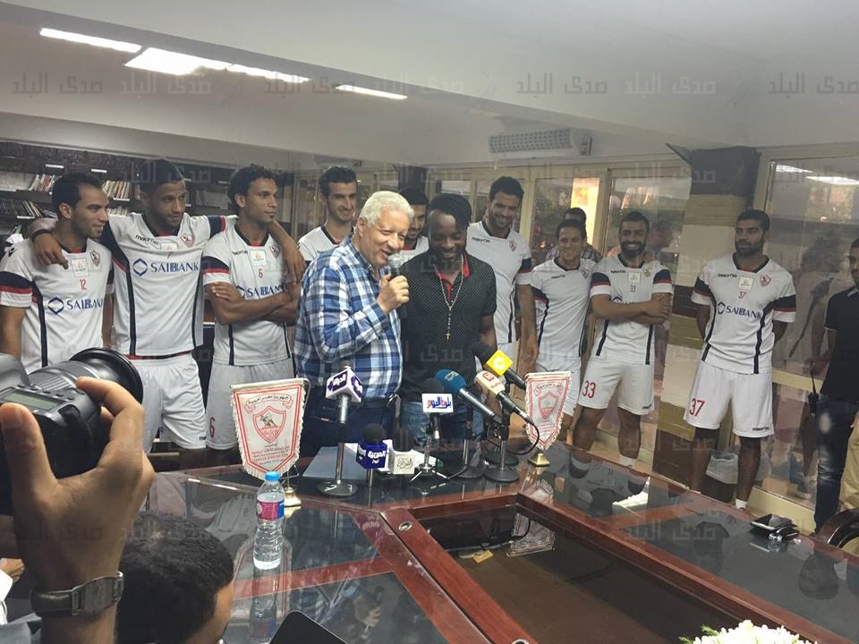 حرص رئيس نادي الزمالك على تقديم لاعبي الفريق الجدد وهم "أحمد جعفر وأسامة إبراهيم ومحمد ناصف ومحمد مسعد ومحمود دونجا وشوقي السعيد ومحمود حمدي ومحمد مجدي والنيجيري ستانلي، وعلي فتحي وحسني فتحي مع عودة إسلام جمال وإبراهيم صلاح".