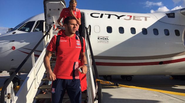 ووصلت بعثة الفريق إلى مدينة هامبورج اليوم الجمعة استعدادا لخوض المباراة وضمت بين صفوفها النجم المصري الشاب.