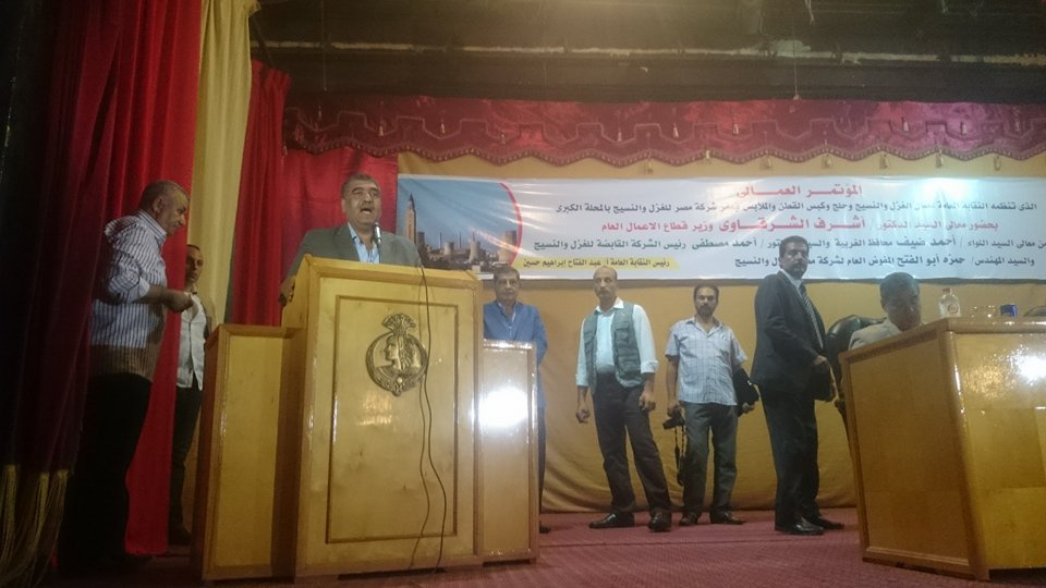 جاء ذلك خلال المؤتمر الذي نظمته النقابة العامة للغزل والنسيج بجضور الدكتور أشرف الشرقاوي وزير قطاع الأعمال والدكتور أحمد مصطفي رئيس الشركة القابضة للصناعات الغزل والنسيج والمهندس حمزة أبوالفتح المفوض العام لشركة غزل المحلة وأعضاء مجلس النواب ولفيف من القيادات التنفيذية والشخصيات العامة واللواء أحمد ضيف صقر محافظ الغربية بمسرح غزل المحلة.