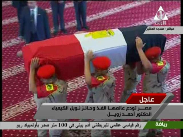 بدأت صلاة الجنازة على العالم المصري الدكتور أحمد زويل بمسجد المشير طنطاوي.