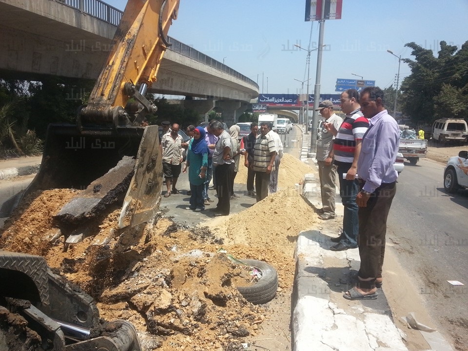 بالصور.. بدء أعمال إصلاح الهبوط الأرضى أمام قرية منية سندوب بالمنصورة