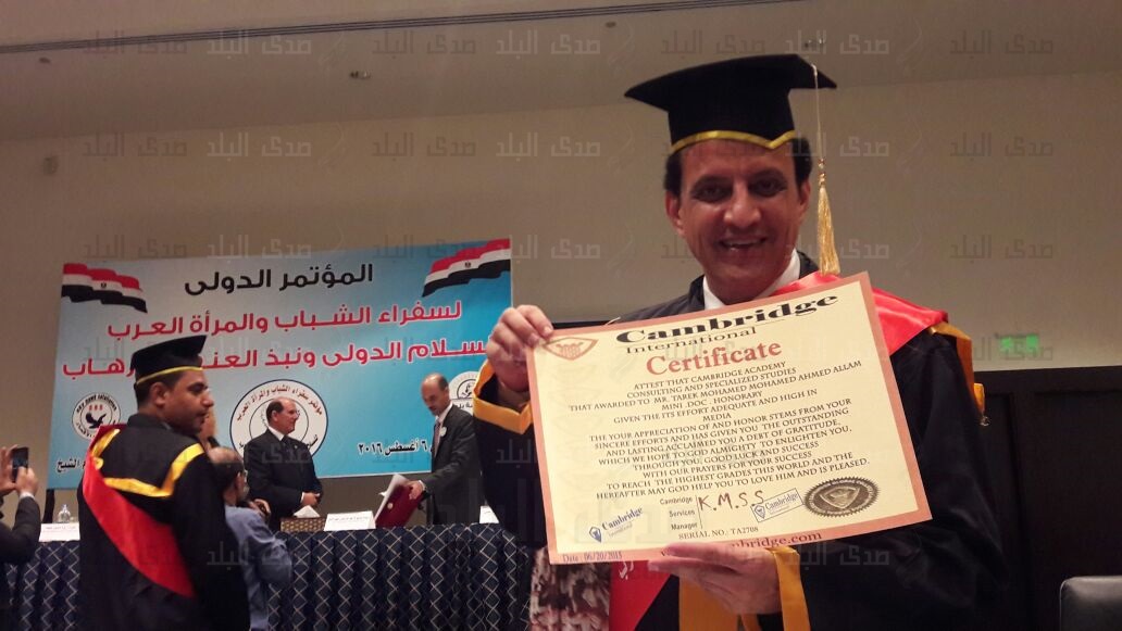 بالصور.. طارق علام يحصل علي دكتوراة فخرية من «كمبريدج» ولقب سفير الشباب العربي