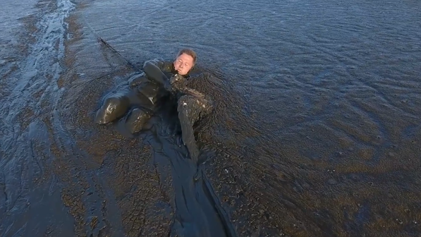 نشرت صحيفة "مترو" البريطانية مقطع فيديو عن طريق "طائرة بدون طيار"، يظهر مصور عانى وسط الوحل من أجل إنقاذ نسر عالق.