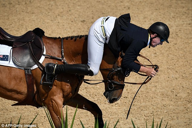 وسقط الفارس البريطاني من اعلي ظهر الحصان ليحرم من الميدالية الذهبية بعد ان قام الحصان في موقف طريف بالاعتراض علي قفز الحاجز و القي سكوت كيتش من اعلي ظهره.