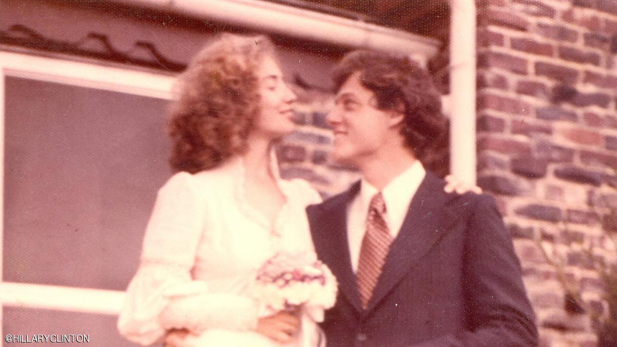 وكتبت هيلاري، التي ظهرت بالصورة المنشورة على حسابها في تويتر، بفستان الزفاف رفقة زوجها، "قبل 45 عاما.. عيد ميلاد سعيد".