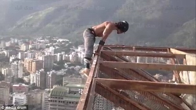 نشرت صحيفة ديلي ميل البريطانية مقطع فيديو لرياضي يدعى جبرائيل إيساك يؤدي التمرينات الرياضية على حافة مبني شاهق في الدور ال60 في فنزويلا
