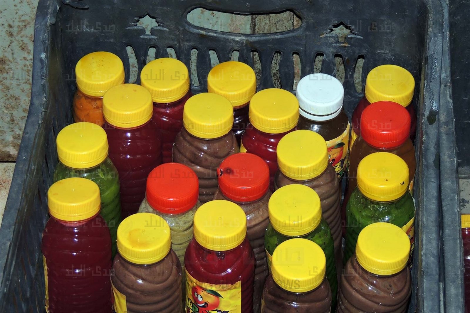 وتم ضبط " 100 " جركن عصير رمان صغير الحجم سعة الجركن 4 لترات و" 60" جركن عصير مانجو كبير الحجم سعة الجركن " 6 " لترات و" 11" جركن عصير رمان كبير الحجم سعة الجركن " 6 " لترات و " 40" جركن عصير أناناس كبير الحجم سعة الجركن 6 لترات و" 30" جركن عصير مانجو سعة الجركن 4 لترات و" 40" جركن عصير علبة آيس كريم فواكه زنة العبوة 200 جرام.