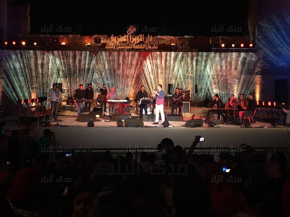صعد منذ قليل المطرب لؤى الى مسرح مهرجان القلعة للموسيقى والغناء "محكى القلعة" والذى يقام داخل قلعة صلاح الدين علي المسرح المكشوف.
