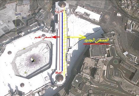 واستطرد: ويجهر بالذكر ويسر بالدعاء، ثم ينزل المحرم من الصفا متجهًا إلى المروة بخشوع وتذلل، ويمشي حتى يحاذي العلم الأخضر الأول، فإذا حاذيه المحرم سعى سعيًا شديدًا إلى العلم الأخضر الثاني، ثم تمشي إلى المروة، وفي كل ذلك تهلل وتكبر وتدعو، فإذا وصل إلى المروة صعد عليها واستقبل البيت الحرام، رافعًا يديه، واقفًا لذكر الله تعالى والدعاء، ويقول مثل ما قاله على الصفا، ويكرره ثلاثا، ثم ينزل من المروة إلى الصفا، ويمشي في موضع المشي، ويسعى في موضع السعي، يفعل ذلك سبعًا.