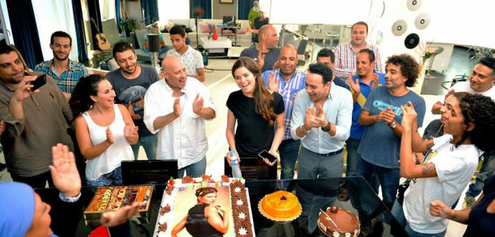 شاهد .. شيري عادل «حامل» ومصطفى قمر في الجبس