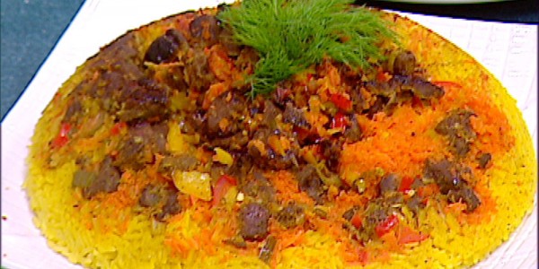 * في طبق التقديم اقلبي الأرز لتصبح الكبدة والجزر على وجه الأرز.الحلو: