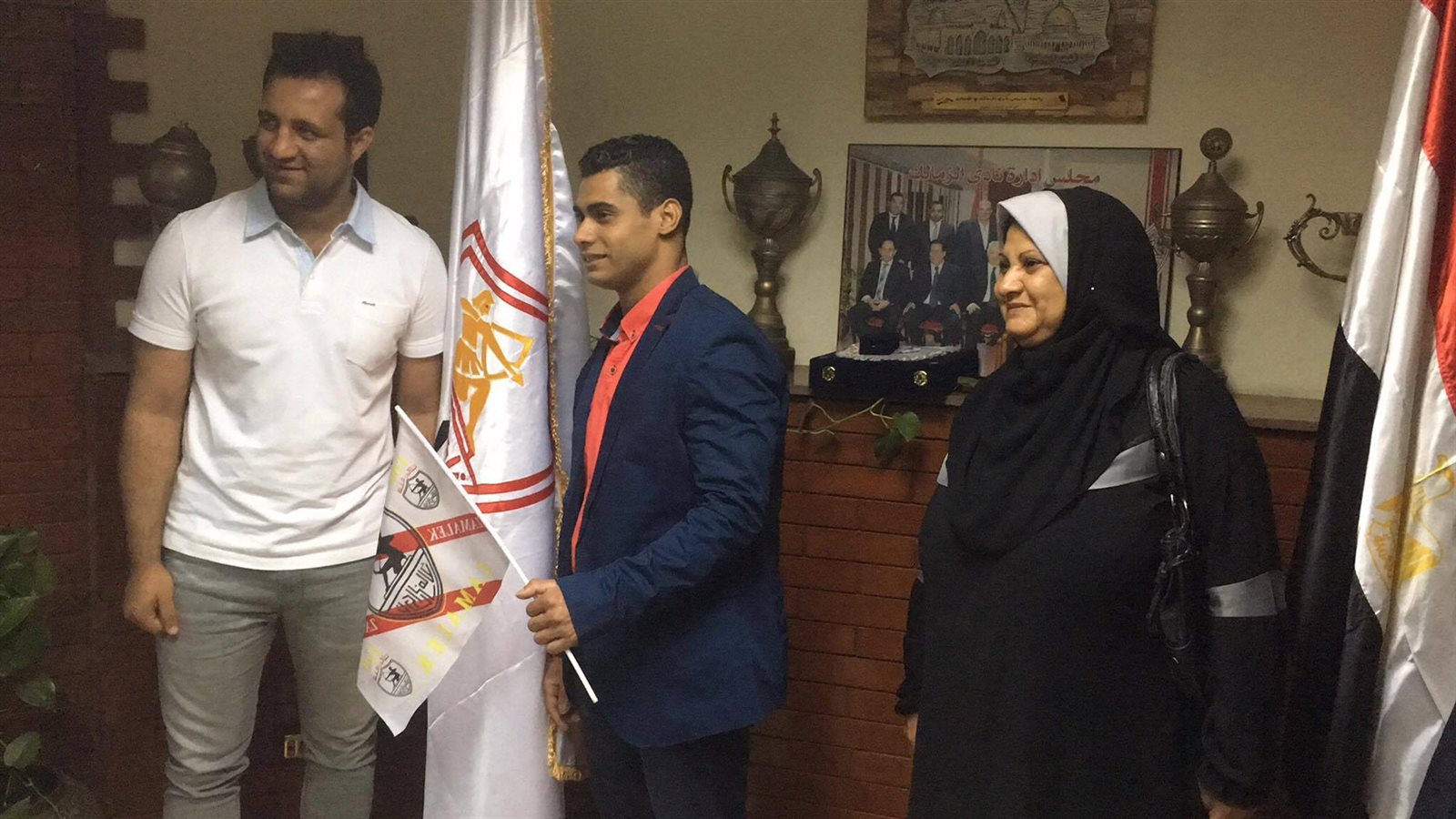 حضر اللاعب بصحبة والدته إلى مقر النادي الأبيض، وكرمه نائب رئيس القلعة البيضاء أحمد جلال إبراهيم، وأحمد مرتضى عضو مجلس الإدارة.