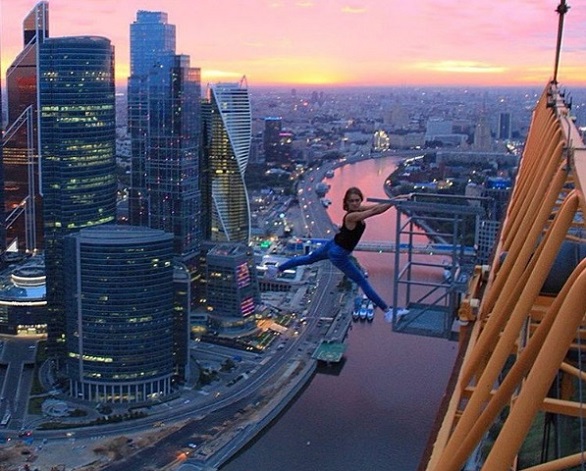 روسية تحتفل مع صديقها بسيلفى ناطحات السحاب..صور