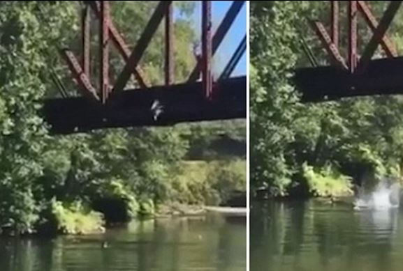 رجل يرمى طفلا من أعلى جسر حديدي في نهر واينتش.. فيديو