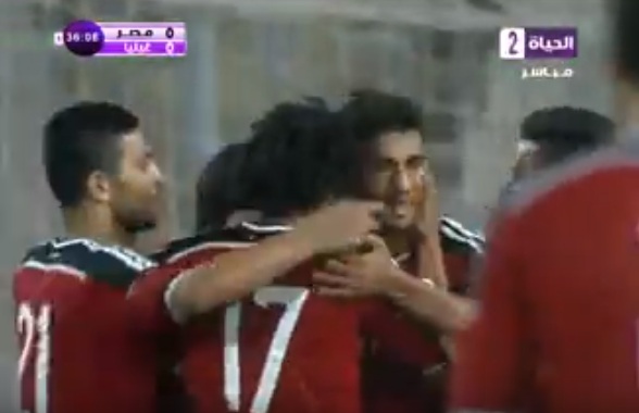 منتخب مصر يتقدم على غينيا بهدف "تريزيجيه" في الشوط الأول .. فيديو