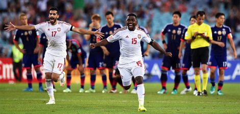 فرحة لاعبى الإمارات بالفوز على اليابان بتصفيات المونديال .. فيديو