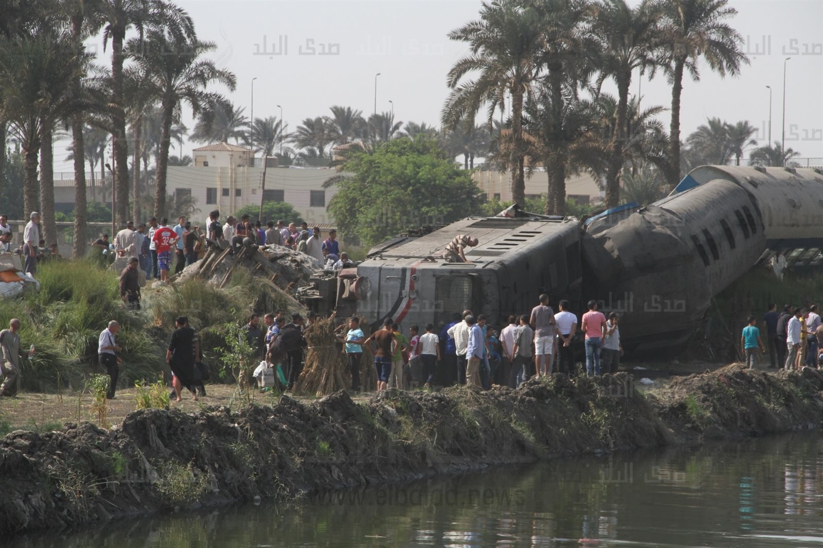 - اهتزاز شديد بالقطار أعقبه الانقلاب وتطاير الركاب خارجه