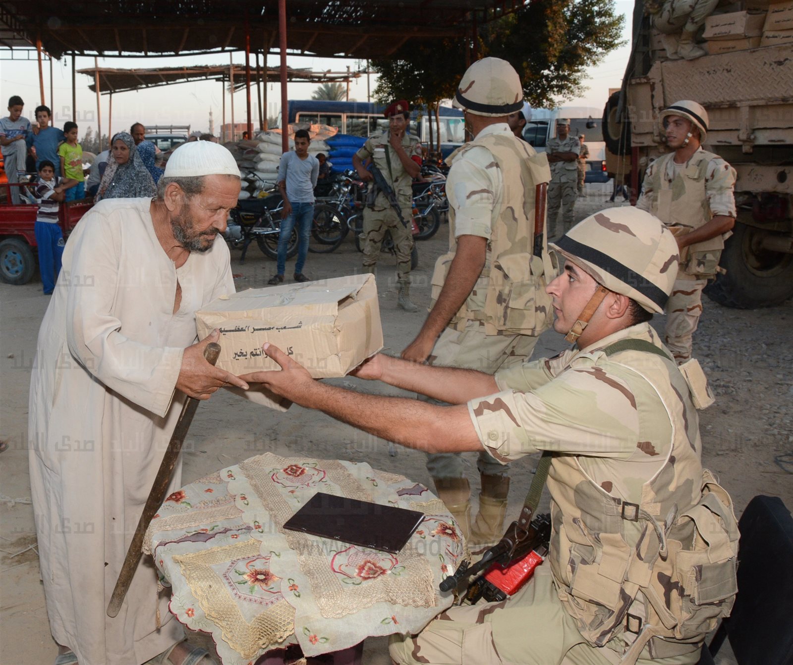 أصدر الفريق أول صدقي صبحي القائد العام للقوات المسلحة وزير الدفاع والإنتاج الحربي أوامره بقيام جهاز الخدمات العامة بالتعاون مع جهاز مشروعات الخدمة الوطنية وهيئة الإمداد والتموين بإعداد وتجهيز مليون ونصف حصة غذائية وتوزيعها علي المستحقين من الفئات الأكثر احتياجًا بالقري والنجوع والأحياء والمناطق الأكثر فقرًا بالعديد من محافظات الجمهورية.