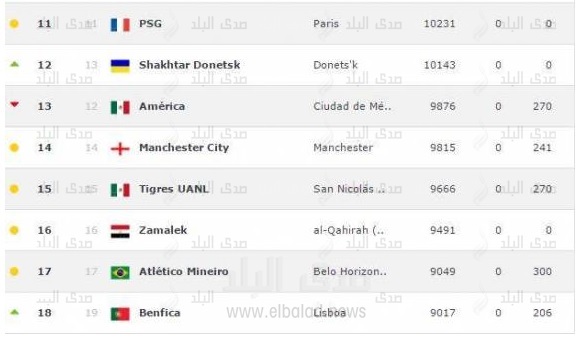 واحتل الزمالك المركز 16 على مستوى أندية العالم ليتفوق على أندية عالمية كبيرة مثل بنفيكا البرتغالي وليفربول الانجليزي ونابولي الايطالي ومانشيستر يونايتد الانجليزي وبورتو البرتغالي وأرسنال الانجليزي.
