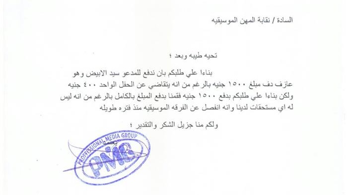 وأضاف أنه بالرغم من أن هذا القرار يعتبر ساريا على الفرق المصرية وﻻ يشمل الأجانب ،إلا ان مجلس الإدارة تدخل مع هيفاء وهبي لمصلحة العازف ،و استجابت وأرسلت مبلغ 1500 جنيه له إلا أننا فوجئنا بعضو النقابة يتهم المجلس بتحصيل مبلغ أكبر من الفنانة اللبنانية وهو الأمر العاري تماما من الصحة ،مما دفع المكتب التنفيذي لاتخاذ قرار تحويله للتحقيق.