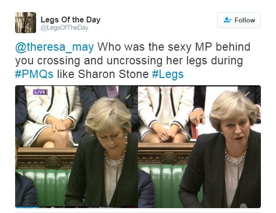 تعرضت إحدى النائبات في البرلمان البريطاني لموقف محرج، بسبب زاوية الكاميرا الخطأ خلال خطاب لرئيسة الوزراء البريطانية تيريزا ماي، إذ وضعت النائبة قدم فوق الأخرى تشبها بما قامت به الممثلة الأمريكية "شارون ستون" في فيلمها "Basic Instinct".