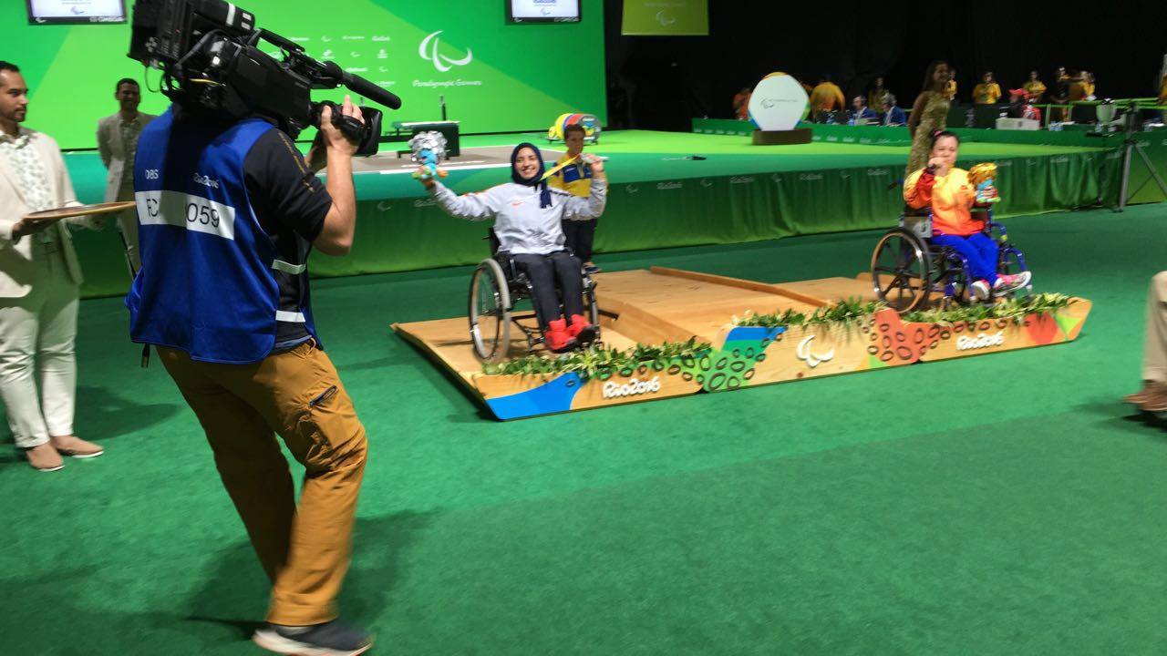 تداول عدد من نشطاء " فيسبوك " مقطع فيديو للحظة تتويج رحاب أحمد رضوان اللاعبة المصرية بالميدالية الفضية فى منافسات رفع الأثقال " سيدات " بوزن 50 كجم فى دورة الألعاب البارالمبية المقامه حاليًا بمدينة ريو دى جانيرو البرازيلية.