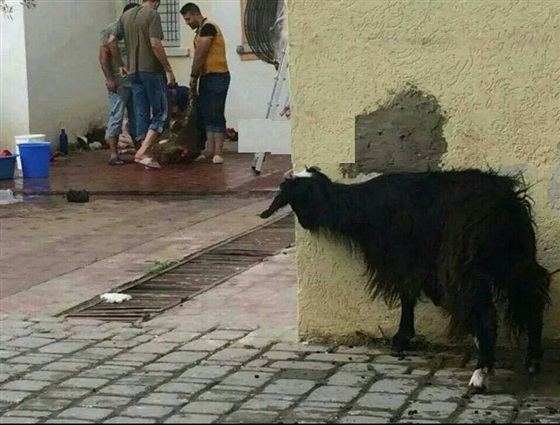بعد ان تمكن 5 أشخاص من ذبح خروف في الجزائر حاول الخروف الهرب منهم ولكنهم تمكنوا من الالحاق به وقاموا بالسيطرة عليه