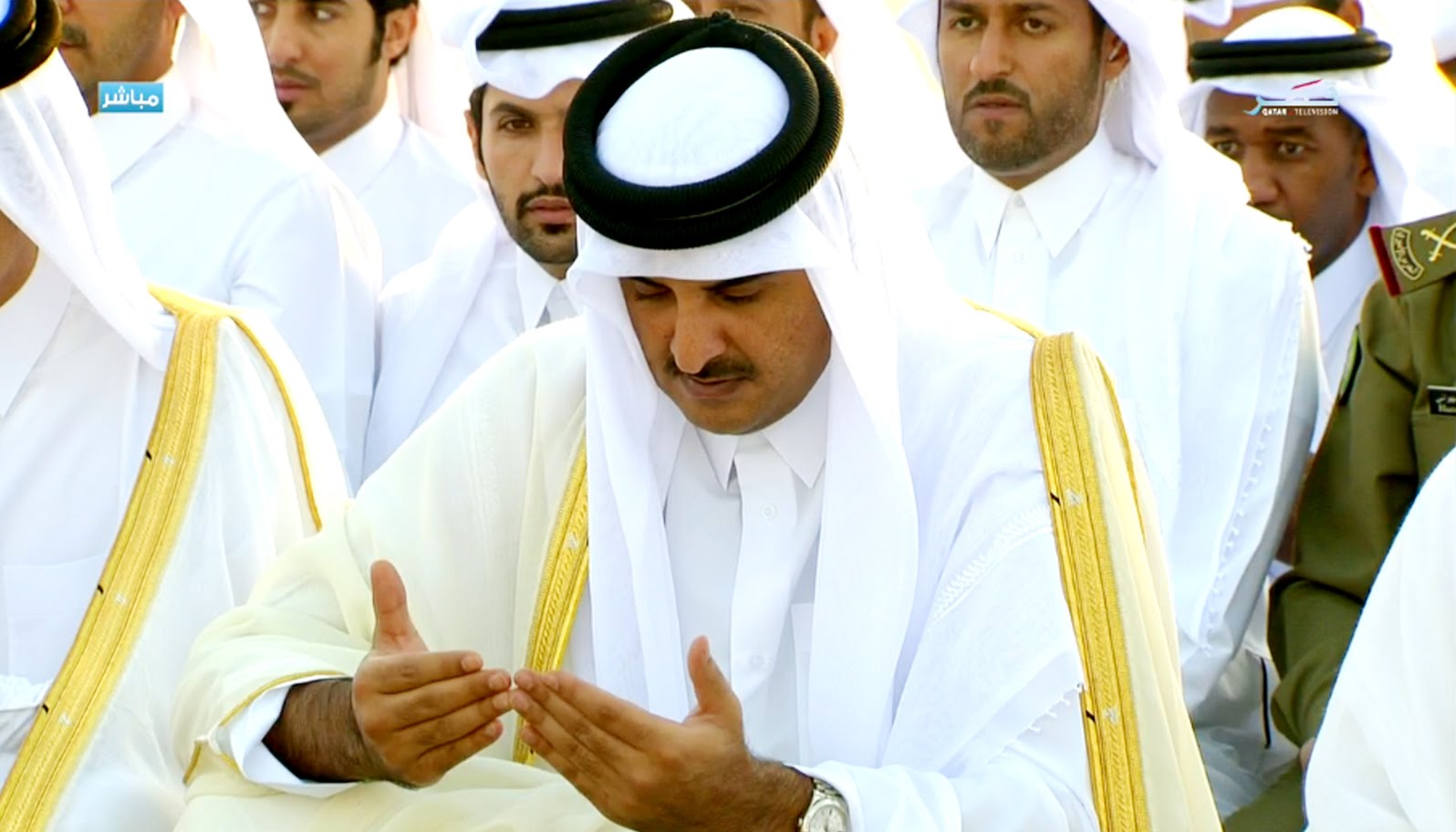 أمير قطر يؤدي صلاة العيد بصحبة والده .. فيديو